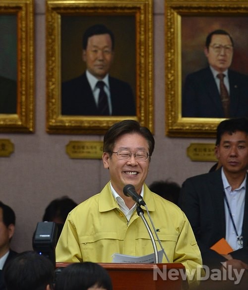 '판교 환풍구 추락사고'와 관련, '책임 회피성' 발언으로 구설에 오른 이재명 성남시장이 이번에는 [웃음]으로, 물의를 빚었다.