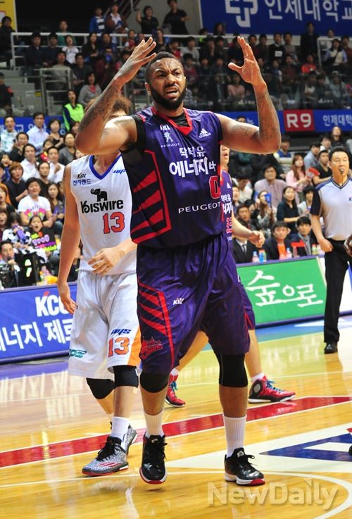 23일 고양실내체육관에서 열린 '2014-2015 KCC프로농구' 고양 오리온스와 인천 전자랜드의 경기에서 오리온스 길렌워터가 불만을 표하고 있다.