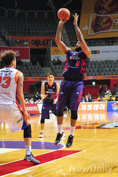 23일 고양실내체육관에서 열린 '2014-2015 KCC프로농구' 고양 오리온스와 인천 전자랜드의 경기에서 오리온스 길렌워터가 슛을 날리고 있다.