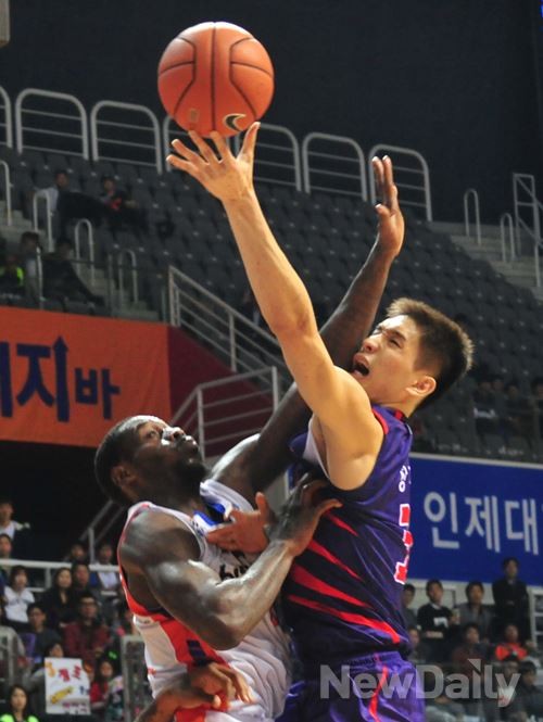 반면 인천 전자랜드 엘리펀츠의 또 다른 용병 테렌스 레더(33)는 2쿼터 10분 간 7득점을 올렸다.