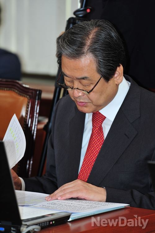 김무성 새누리당 대표가 24일 오전 여의도 국회에서 열린 농림축산식품해양수산위원회의 해양수산부 및 해경에 대한 국정감사에서 자료를 검토하고 있다.