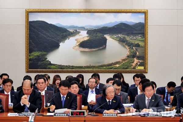 24일 오전 여의도 국회에서 열린 농림축산식품해양수산위원회의 해양수산부 및 해경에 대한 국정감사에서 피감기관장들이 감사를 받고 있다.