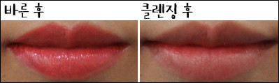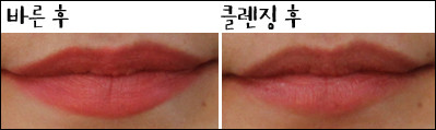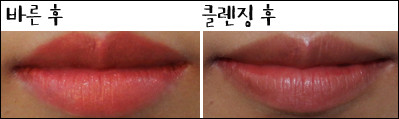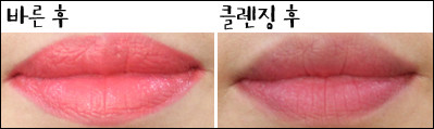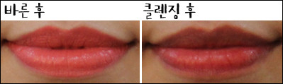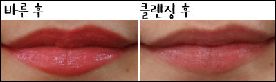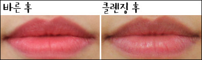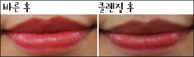 [텍스처] 촉촉하지만 입술에 꼼꼼하게 발리지 않고 살짝 뜨는 느낌이다.[발색력] 눈으로 보이는 제품 색상이 입술에도 그대로 발색된다.[각질 부각&주름 끼임] 입술 주름에 많이 꼈고 테스트 제품들 중 각질 부각도 가장 심했다.[지속력] 지속력이 좋았고 그만큼 착색도 심했다.[총평]일단 색상이 나랑 가장 어울리지 않아 잘 바르지 않게 됐다. 발색력은 좋았고 촉촉하기도 했지만 각질 부각과 주름 끼임이 심했다.또한 중,고등학생 아이들은 좋아할 것 같은데 내가 들고다니면서 쓰기엔 조금 쑥스러운 케이스가 아쉽다.[만족도] ★■ 최지민 기자(20대 중반, 웜톤, 평소 립밤을 생활화해 입술 각질이 적음, 입술 색은 조금 어두운 편)