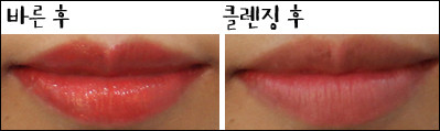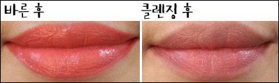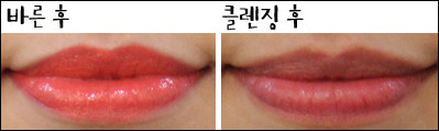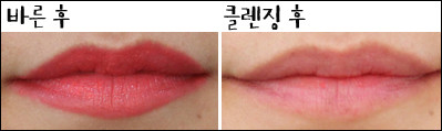 # 테스트 제품에뛰드하우스 디어 마이 위시 립스-톡 OR202 닮고싶은 여배우 코랄스킨푸드 비타 컬러 립스틱(글로스) OR03 에너지 코랄이니스프리 크림멜로우 립스틱 4호 따뜻한 코랄 자몽티잇츠스킨 잇츠 탑 바이 이태리 새틴 립 펜슬 05호 소프트 코랄미샤 시그너처 글램 아트 루즈 SPF15 PA+ SCR307 메이플 코랄 R▲ 발색▲ 클렌징 워터로 1번 닦은 후▲ 클렌징 워터로 3번 닦은 후# 총평▲ 긁어낸 후에뛰드하우스 디어 마이 위시 립스-톡 OR202 닮고싶은 여배우 코랄■ 엄정여 편집장(40대 초반, 쿨톤, 매트한 립스틱을 바르면 금방 입술이 트고 각질이 부각되는 편) -