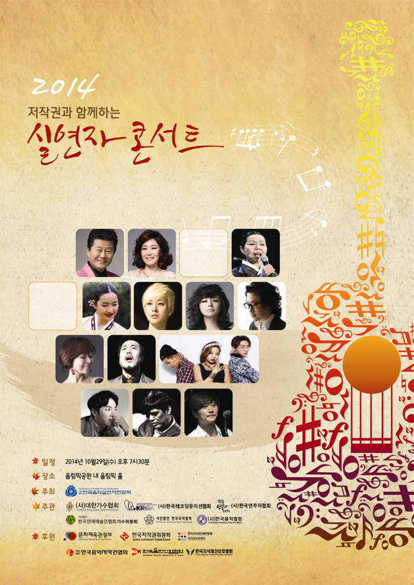 음악실연자의 저작인접권 집중관리단체인 한국음악실연자연합회 (회장 : 송순기) 는 10월 29일(수) 올림픽공원 내 올림픽홀에서 ‘2014 저작권과 함께하는 실연자 콘서트’를 개최한다.