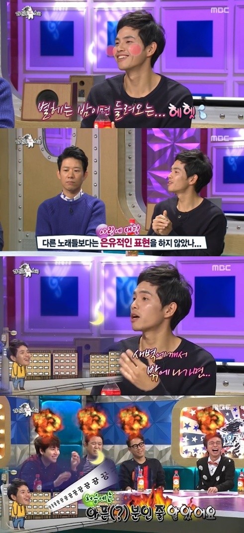 박원이 고(故) 유재하의 '그대 내품에'에 대한 19금 해석으로 '라디오스타'를 초토화 시켰다.29일 방송된 MBC '황금어장-라디오스타'에는 유재하의 절친 피아니스트 김광민, 유재하와 밴드활동을 했던 장기호, 유재하 음악경연대회 출신 조규찬과 원머어찬스 박원이 출연했다.이날 박원은 11월 하면 생각나는 고 유재하의 곡으로 '그대 내 품에'를 꼽으며 "내가 미대를 다녔는데 그때 교수님께서 많은 음악을 들려주셨다. 그때 들었던 유재하의 '그대 내 품에' 가사가 야하다고 생각했다"고 털어놨다.이어 "가사 중 '별 헤는 밤이면 들려오는 그대의 음성'이라는 부분이 다른 노래들보다 은유적으로 표현을 한 것이 아닐까 생각했다"고 덧붙여 주위의 야유를 받았다.박원은 "내가 옥탑방에 혼자 사는데 빌라들이 좀 붙어있다. 새벽에 바람을 씨러 잠깐 나가면 옆 빌라에서 음성이 들려온다. 처음에는 아픈 사람인 줄 알았다. 오빠를 너무 찾는다"고 19금 발언으로 모두를 경악케 했다.그러면서 "그런 의미에서 이 노래를 들으니 선정적인 느낌이 가미되지 않았나 싶다"고 설명해 웃음을 자아냈다.[라디오스타 박원, 사진=MBC '라디오스타' 방송 캡처]