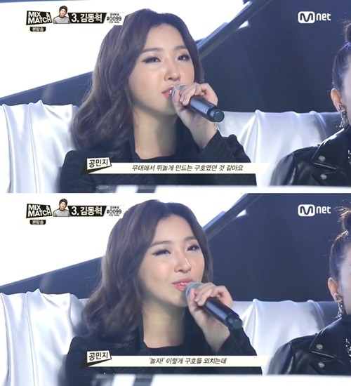 2NE1(투애니원) 공민지가 물오른 미모로 눈길을 사로잡았다.10월 30일 방송된 Mnet '믹스앤매치'에서는 지난 22일 서울 안암동 고려대 화정체육관에서 성황리에 개최됐던 파이널매치 현장이 베일을 벗었다.iKON의 멤버로 확정된 B.I와 BOBBY, 김진환과 멤버 후보들 총 9명은 자유곡 매치, 자작곡 매치, 댄스 매치를 치렀다.이날 파이널배틀에는 양현석 YG대표 프로듀서를 비롯한 지드래곤과 태양, 에픽하이, 산다라박, 씨엘, 공민지, 이하이, 악동뮤지션, MC대성과 유인나 등 YG패밀리들이 총출동했다. 특히, 오랜만에 모습을 드러낸 공민지는 한층 성숙하고 예뻐진 미모로 인터뷰를 진행해 이목을 집중시켰다.무대를 접한 공민지는 "우리(투애니원)도 항상 무대에 올라가기 전에 '놀자!' 이렇게 구호를 외치는데 '시노시작'은 무대에서 뛰놀게 만드는 구호였던 것 같다"며 "한 방이 있고 반전매력이 있는 친구들이다" 칭찬했다.['믹스앤매치' 공민지, 사진=Mnet '믹스앤매치' 캡처]