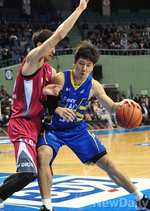31일 서울 잠실실내체육관에서 열린 2014-2015 KCC 프로농구 서울 삼성과 창원 LG의 경기에서 1쿼터 초반 서울 삼성 김준일 선수가 공격 도중 심판으로 부터 오펜스 파울을 선언 당하고 있다.