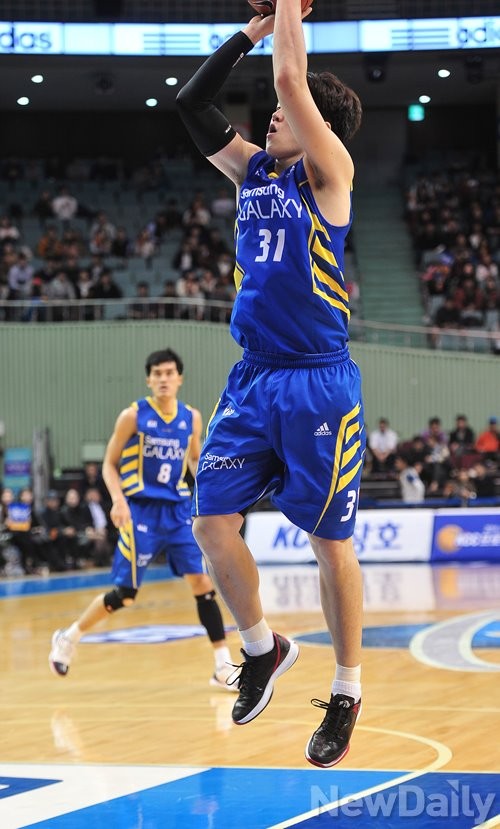 31일 서울 잠실실내체육관에서 열린 2014-2015 KCC 프로농구 서울 삼성과 창원 LG의 경기에서 2쿼터 삼성 김준일이 연속해서 득점에 성공하고 있다.