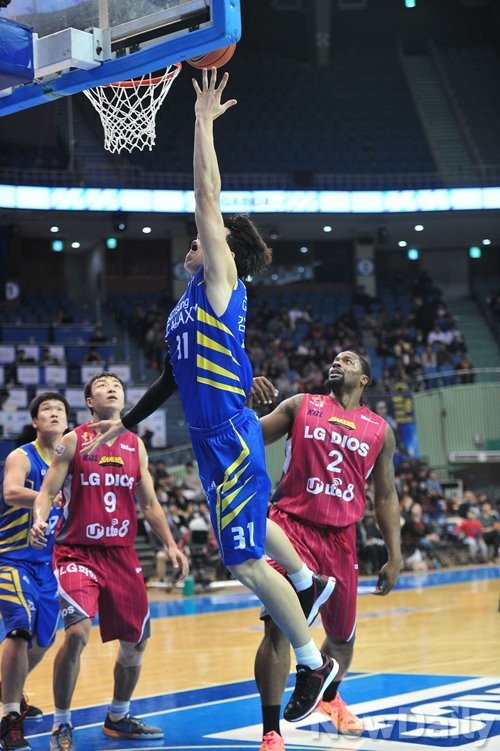 31일 서울 잠실실내체육관에서 열린 2014-2015 KCC 프로농구 서울 삼성과 창원 LG의 경기에서 2쿼터 종료 직전 서울 삼성의 김준일이 드리볼 돌파 후 레이업 슛을 성공 시키고 있다.