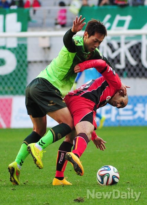 전북 김남일 선수가 볼 다툼을 벌이고 있다.