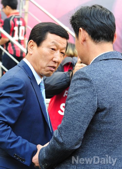 전북 최강희 감독과 서울 최용수 감독이 인사를 나누고 있다.