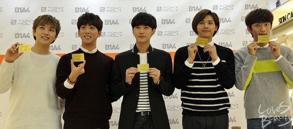 한편 토니모리는 오는 8일까지 전국 매장에서 1만 원 이상 구매 시, 100% 당첨되는 스크래치 카드를 증정한다.토니모리의 인기 제품들의 교환권과 할인쿠폰으로 구성돼 있으며, 1등 경품인 24K 골드 명함카드는 B1A4 멤버들의 친필 사인과 메시지가 담겨 있어 소장가치가 높다.[사진 = 토니모리]