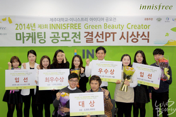 <이니스프리>는 지난 3일, 제주대학교 및 제주대학교 LINC사업단(단장 이상백 교수)과 공동으로 개최한 <제주대 그린 뷰티 크리에이터 마케팅 공모전>의 최종 발표회 및 시상식을 진행했다.지난 8월 25일부터 11월 3일까지 약 두 달 간 제주대 재학생(휴학생 및 대학원생 제외)을 대상으로 진행된 이번 공모전은 제주 원료를 활용한 신제품 제안과 이니스프리 제주하우스 체험 콘텐츠 제안, 제주 곶자왈 CSR 홍보 전략 총 3가지 주제로 진행됐다.공모전에는 총 40개 팀으로 구성된 76명의 참가자가 응모했으며, 엄격한 심사 기준을 거쳐 최종 5팀이 선발됐다.참신한 아이디어가 돋보인 이번 공모전에서는 [이니스프리의 13번째 원료 아티촉촉] 이라는 아이템을 제안해 창의성과 논리성 부분에서 높은 평가를 받은 제주대 이태훈 (관광경영학 4년)과 이영석(영어영문학 4년) 학생이 대상을 수상했다.이들은 “제주도의 기후가 점차 아열대로 변해가는 것에 주목해, 최근 신재료로 각광받고 있는 아티초크를 원료로 한 기능성 팩 라인을 제안했다”고 전했다.이번 공모전은 총 1000만원 상당의 장학금과 부상이 주어지며, 졸업예정자인 입상자들에게는 이니스프리의 인턴십 기회가 제공된다.실제로 버려진 폐교를 활용해 이색적인 브랜드 체험 공간을 제안한 [제주 이니스프리 게스트하우스]로 2013년 대상을 수상했던 한 학생은 인턴십 과정을 거쳐 2014년도 상반기 공채로 이니스프리에 입사한 바 있다.한편, 이니스프리와 제주대학교는 지난 2012년부터 [글로벌 향장산업 인재육성 및 연구발전]을 위한 산학협력을 체결, 지역 인재 육성과 지역 경제 활성화를 위해 지속적인 노력을 기울이고 있다.[사진 = 이니스프리]