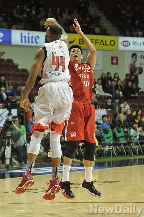 7일 오후 안양시 안양실내체육관에서 열린 2014-2015 KCC 프로농구 안양KGC 와 서울 SK의 경기에서 안양KGC 오세근이 첫 득점을 올리고 있다.