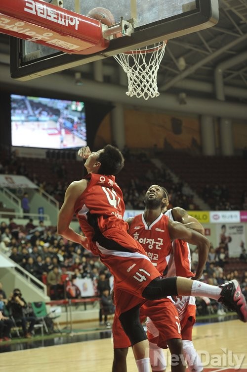 7일 오후 안양시 안양실내체육관에서 열린 2014-2015 KCC 프로농구 안양KGC 와 서울 SK의 경기에서 안양KGC 오세근이 레이업 슛을 성공 시키고 있다.