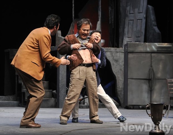 채승훈이 연출을 맡고 배우 박용수, 김태훈, 김동안, 이종무, 박완규 등 5명의 남자 배우가 출연한다. 7일 부터 23일 까지 명동예술극장에서 관람 가능하다.