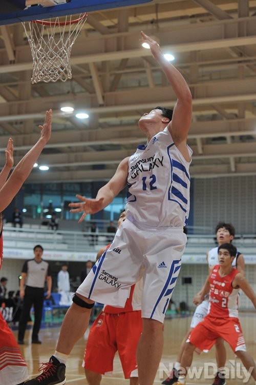 [프로농구연맹 (KBL D리그)] 10일 오후 고양시 고양 실내 보조체육관에서 열린 2014-2015 KBL D리그 프로농구 서울 삼성 과 서울 SK의 경기에서 서울 삼성 송창무가 골밑 득점을 성공 시키고 있다.