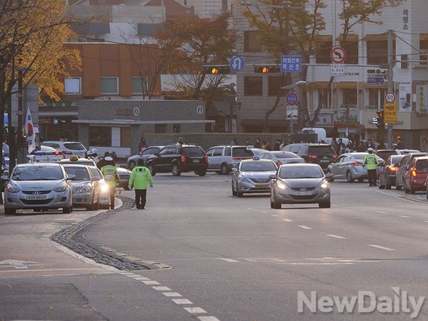 2015학년도 대학수학능력시험 날인 13일 오전 수능일 관공서 출근시간이 오전 10시로 변경된 가운데 수학능력시험이 실시되는 고사장 주변도로의 교통이 평상시 보다 원활하게 흐르고 있다.