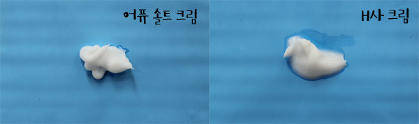# 총평■ 엄정여 편집장(40대 초반, 건성)[텍스처] 쫀쫀한 제형으로 약간 무거운 편.[흡수력] 뻑뻑해서 얼굴에 쉽게 스며들지 않고 겉도는 느낌.[보습력] 한마디로 별로![탄력] 특별히 느껴지지 않는다.[총평]점성은 약간 무거운 편으로 바르고 나면 투명막이 씌워져 살짝 코팅된 느낌이다. 끈적임은 거의 없고 향은 강하진 않지만 올드한 느낌이다.사용하고 시간이 조금 지나자 건조함이 확~ 느껴지며 얼굴이 당겼다. 이 제품 하나만 발라서는 건조함이 해결되지 않아 다른 수분크림이나 영양크림을 덧발라줘야 했다.다양한 피부고민에 즉각적으로 반응한다는 사해 소금 10% 함유, 보습뿐만 아니라 밀도와 결, 손상개선까지 도움을 준다고 하는데 사용 후 이렇다 할 효과를 보지 못했다. 트러블이 별로 없는 피부라 그런지 더더욱!효능은 참 별로인데, 사해소금 10% 함유를 내세우며 브랜드숍 최초 론칭, 가장 많은 함유량, 안정화시키기 어려운 사해 소금을 크림 속에 잘 녹여낸 특별한 공법 등 제품의 콘셉트만 엄청 잘 잡은 느낌이랄까?[만족도] ★☆■ 최은혜 기자(30대 초반, 지복합성)[텍스처] 묵직한 연고 같은 제형.[흡수력] 제형이 묵직해서 흡수가 다소 느렸다.[보습력] 지성피부라 제품 하나만으로 보습은 충분했다.[탄력] 사용 후 일시적인 탄력이 생겼다.[총평]가을, 겨울로 접어들면 춥고 건조해지는 환경 때문에 볼 부분이 예민해진다. 민감성 피부도 부담 없이 쓸 수 있는 제품이라고 해서 출시 됐을 때 관심이 많았던 제품이다.첫인상은 드럭스토어에서 흔히 볼 수 있는 A사의 크림과 비슷했다. 가벼운 제형의 A사 제품에 비해 솔트크림은 되직한 제형이라 흡수도 느린 편이고 흡수보다는 막을 만든다는 느낌이 강했다.또한 약간의 끈적임이 있어 바쁜 아침시간에는 사용할 엄두가 나지 않았다.때문에 저녁 세안 후 에센스 다음 단계에서 사용했는데 흡수는 느리지만 보습력은 짱짱했다.좀 더 가벼운 사용감이었다면 좋았을 것 같다는 아쉬움이 든다. 탄력이나 기타 다른 변화를 기대하기보단 보습력만 생각한다면 사용해 볼만할 듯.[만족도] ★★★▲ 기름종이 테스트 1시간 후■ 심은혜 기자(20대 후반, 복합성)[텍스처] 부드럽게 잘 발린다. 연고를 바르는 것 같은 느낌.[흡수력] 피부에 잘 흡수되지 않고 겉돈다.[보습력] 건조했던 피부가 조금 개선된 듯한 느낌은 있지만 매우 촉촉하진 않다.[탄력] 딱히 느끼지 못했다.[총평]처음 손등에 테스트했을 때는 사용감도 부드럽고 여태 써왔던 크림과는 약간 다른 텍스처라 기대했다. 그러나 손등과는 달리 얼굴에 사용했을 때 따가움을 느꼈다. 소금 성분 함유로 일시적으로 다소 얼굴이 따가울 수 있다고 제품 설명에 기재됐지만 바를 때마다 약간의 따가움을 느꼈고 특히 피부가 예민할 때는 사용할 수 없을 정도로 얼굴이 심하게 따가웠다. 또한 크림이 흡수되지 않고 겉에 남아 얼굴을 문지르면 마치 때 같은 잔여물이 나와 거부감이 많이 들었다. 7일 만에 효과를 볼 수 있다고 했지만 결국 7일 동안 사용할 수가 없었다.다만 60ml의 크림이 튜브 형태 패키지에 담겨 깔끔하게 사용하기 좋았으며 향도 강하지 않고 은은한 점이 맘에 들었다.[만족도] ★☆■ 최지민 기자(20대 중반, 복합성)[텍스처] 심하진 않지만 약간 뻑뻑하게 발리는 되직한 제형. 사용하기 불편할 정도는 아니다.[흡수력] 완전히 흡수시키려면 조금 시간이 걸린다.[보습력] 가을과 겨울, 건성 피부는 이 제품 하나로 보습에 만족할 수 없다.[탄력] 바른 후 일시적인 탄력을 느끼는 정도.[총평]어퓨 기초라인을 처음 접해보기도 했고 사해 소금 성분이 들어간 제품 역시 처음이라 신제품을 사용해볼 때 늘 그렇듯 기대감을 안고 아침, 저녁으로 사용했다. 다른 기초라인에 비해 보습력에 중점을 맞춘 제품이라고 하는데 결론적으로 볼 부분이 꽤 심한 건성인 나에게는 건조했다. 다른 크림은 사용하지 않고 이 제품으로만 마무리했을 때는 조금 시간이 흐르면 여지없이 앞 볼 쪽이 당기는 것을 느꼈다.그래서 사실 크림처럼 사용하기 보다는 오히려 묵직한 수분크림을 사용하기 전 에센스처럼 발랐다.T존 부위는 이것만 발라도 큰 문제가 없었고 사용감은 순한 편이었는데 각질케어를 하고 이틀 정도 바르면서 따가움을 느꼈다. 일시적인 현상이라고 하고 다른 부작용으로 이어지거나 하진 않았지만 얼굴이 따가우니까 거부감이 든 것은 사실이다. 아쉬웠던 점 한 가지 더. 흡수력이 많이 느린 편이라고는 생각 안했는데 어느 날은 아침에 이 제품으로 마무리하고 평소 사용하던 에어쿠션을 발랐더니 턱 부분에 살짝 때처럼 밀리는 현상을 경험했다.[만족도] ★★☆[사진 = 러브즈뷰티 DB]
