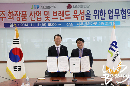 LG생활건강 화장품사업부 배정태 전무는 “국내 천연 자원의 보고로 꼽히는 청정섬 제주와 협력해 깨끗한 물과 친환경 원료를 기반으로 고급 천연 화장품 개발을 선도하고, 기존 시장에 없는 차별화된 경쟁력을 갖출 것”이라고 말했다.제주테크노파크 김일환 원장은 “제주의 우수한 향토자원과 LG생활건강의 첨단기술과 융합하여 제주화장품 산업 육성과 더불어, 제주향토기업과의 공동연구 및 협력사업을 발굴하여 제주기업의 지속적 성장이 되도록 지원하겠다“고 밝혔다.한편, 제주테크노파크는 제주의 향토원료를 산업화하여 지역산업 경쟁력 강화 및 지역경제 활성화에 앞장서고 있는 제주지역 산업진흥 기관이다.[사진 = LG생활건강]