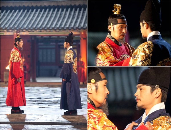 공개된 사진 속에서 서로 마주한 서인국과 이성재는 날카롭게 대립하며 한 치의 양보도 없는 팽팽한 신경전을 벌이고 있다. 이들은 각각 부왕과 세자로 홍룡포와 청룡포를 입고 대치하고 있어 그간 사극에서 볼 수 없었던 극한의 대립각을 세운 부자간 '왕들의 전쟁'을 예고한다.