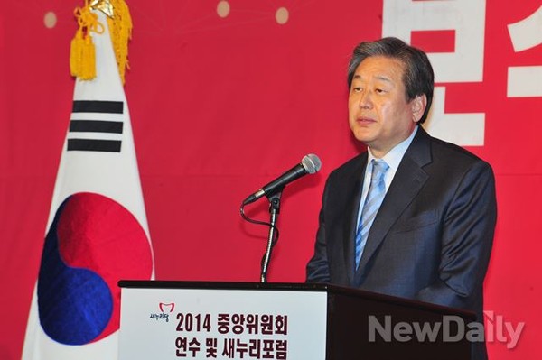 김무성 새누리당 대표가 20일 오후 영등포구 당산동 그랜드컨벤션센터에서 열린 새누리당 중앙위원회 연수 및 포럼에서 인사말을 하고 있다.