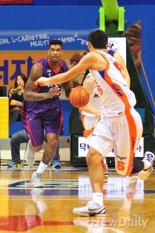 20일 고양실내체육관에서 열린 '2014-2015 KCC프로농구' 고양 오리온스와 인천 전자랜드의 경기에서 오리온스 가르시아가 공격을 하고 있다.