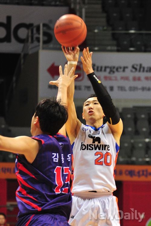 20일 고양실내체육관에서 열린 '2014-2015 KCC프로농구' 고양 오리온스와 인천 전자랜드의 경기에서 전자랜드 정영삼 선수가 슛을 하고 있다.