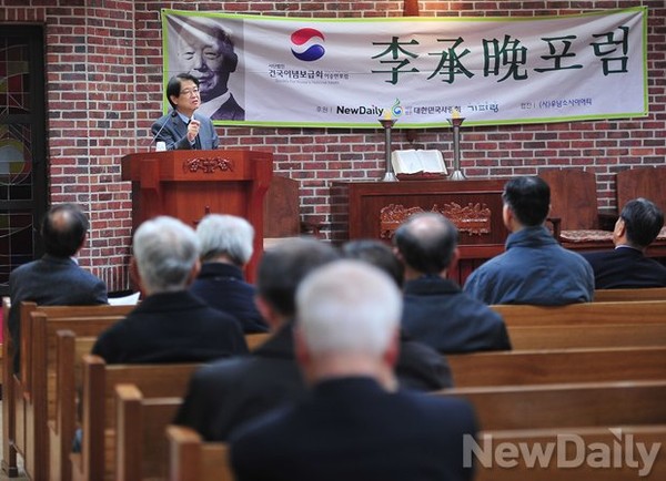 - ▲ ▲ 20일 서울 정동교회에서 열린 제 45회 이승만포럼에서 이춘근 박사는 이승만 대통령에 대해 국제주의를 현실주의적 관점에서 인식해 탁월한 외교적 성과를 이뤄냈다고 평가했다. ⓒ뉴데일리 정재훈 사진기자