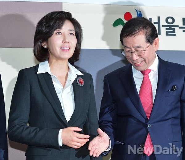 새누리당 서울시당과 새정치민주연합 소속인 박원순 서울시장이 24일 오전 서울시청에서 [