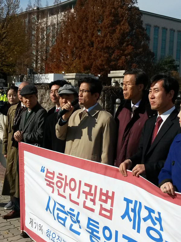 김 위원장은 “UN이 김정은 등 북한의 인권압살 책임자들을 국제형사재판(ICC)에 회부시키자며 전 세계 인류가 북한인권 문제를 제기하는 등 많은 노력을 하고 있는데, 대한민국 국회만 늑장을 부리고 있다”며 “이제는 양심을 가진 국회의원들이 앞장서서 북한인권법을 통과시켜야 한다. 북한인권법이 통과되면 그 빛이 북한 만방에 퍼지게 될 것”이라고 말했다.하태경 새누리당 의원은 “북한인권문제의 본질은 수령 독재, 김정은 독재에 있다”며 “UN이 드디어 북한인권 문제의 핵심이자 본질이 김정은 정권에게 있다는 것을 알게 됐다. 가까운 장래에 김정은이 국제형사재판소에 회부될 가능성도 배제할 수 없는 상황”이라고 언급했다.