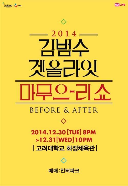12월 30~31일 '2014 김범수 겟올라잇 마무으리쇼 - Before & After' 개최