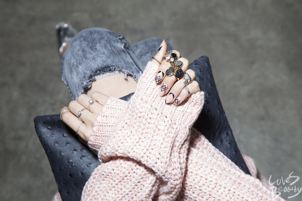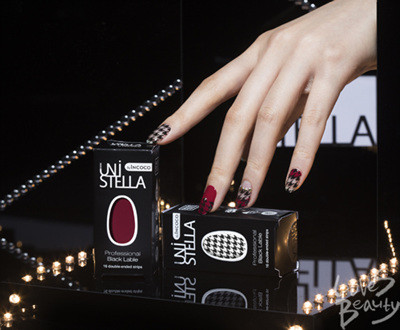 홀리데이 룩에 사용된 <UNISTELLA_BL> 라인은 네일 스티커처럼 생겼으나, 실제 매니큐어를 100% 드라이해 압축시켜 만든 제품이다. 이는 전 세계 특허 기술을 보유한 인코코와 박은경 아티스트가 만든 제품으로, 일반 매니큐어뿐만 아니라 젤 네일 위에도 레이어드 할 수 있다.[사진 = 유니스텔라]