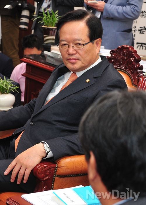 정의화 국회의장이 27일 오전 국회 의장실에서 예결위 야당 간사인 새정치민주연합 이춘석 의원에게 내년도 예산안 기한 내 처리를 당부하고 있다.