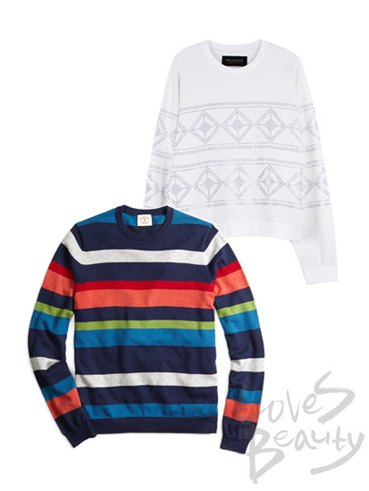 밝은 톤 스웨터로 생기 있게 연출, 도톰한 안감의 아우터형 셔츠 인기