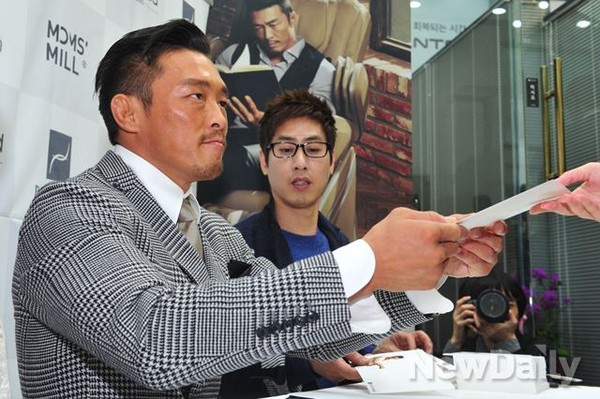 격투기 선수 추성훈 이 28일 오전 서울 강남구 역삼동 카페드 바디프랜드에서 열린 오픈 기념 팬 사인회에서 팬들에게 싸인을 해주고 있다.
