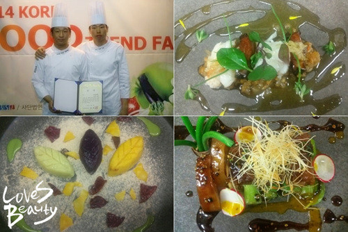 워커힐 외식사업부 <파로그랜드>의 이욱희, 남상환 조리사가 지난달 3일부터 5일까지 양재동 aT센터에서 개최된 [2014 코리아 푸드 트렌드 페어-푸드 챌린지 경연대회] 첫날 조리라이브부문에서 대상을 받았으며, 요리경연대회 전체에서 최고 점수를 받으며 최우수상(국회의원상)을 수상해 화제다.(사)한국식생활제과협회가 주최하고 aT센터와 드림포트가 공동으로 주관한 푸드 트렌드 페어는 우리음식 문화의 우수성을 알리고 각 분야의 전문가를 꿈꾸는 학생들의 수준을 한 단계 끌어올리기 위해 개최된 행사다.조리전시부문, 조리라이브부문, 조리단체전시부문으로 나누어 진행된 이번 행사에는 전국에서 90개 단체팀을 포함, 총 400여명이 참가해 한식의 세계화를 주제로 열띤 경연을 벌였다.세계 시장에서 통할 수 있는 퓨전 한식의 다양한 작품이 선보여진 이번 대회에서는 새로운 식감을 선사하면서 사용된 식재료들이 절묘한 조화를 이루는 작품들이 대거 출품됐으며, 다양한 레시피와 메뉴 등이 개발됐다.<파로그랜드팀>의 이욱희, 남상환 조리사는 전채로 겨자소스를 곁들인 홍삼전복과 바닷가재 냉채, 메인요리로 돼지 삼겹살찜과 간장 흑후추소스, 후식으로 고구마 삼색란과 녹차꿀소스를 선보였다.