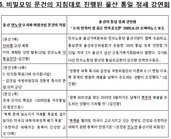 하 의원이 공개한 ‘2005년 자주통일 사업을 위한 운영위 토론용 기획(초안)’ 문건에는 ▲‘이북의 선도영도에 의해 北美대결전 승리의 결정적 전환이 이루어지고 있는 지금 전사로서 나는 어떤 태세로 화답할 것인가’ ▲대중의식화 중심기조에 ‘北의 핵무장 불가피성과 정당성, 北의 핵무기가 한반도 평화를 담보하고 있다는 주장을 결합한다’ ▲‘자주통일 사업을 중심으로 분회를 강화하고 이를 통해 黨을 강화한다’ 등의 내용이 포함되어 있다.