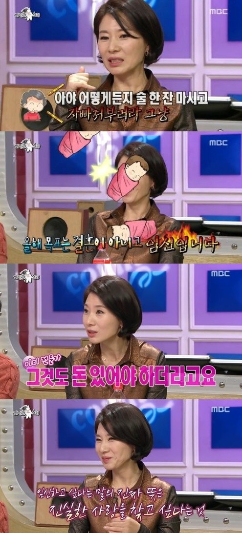 배우 황영희가 폭탄 발언으로 '라디오스타'를 초토화시켰다.지난 3일 방송된 MBC '황금어장-라디오스타'(이하 '라디오스타')에서는 은 '예쁜 나이 47살' 특집으로 배우 조재현, 이광기, 임호, 황영희가 출연해 화끈한 입담을 뽐냈다.이날 조재현은 "황영희가 올해 목표는 결혼이 아니라 임신이라고 하더라"고 폭로해 웃음을 자아냈다.이에 황영희는 고개를 끄덕이며 "내일을 생각하지 않는다. 결혼에 대한 생각도 잘 하지 않았던 것 같다"며 "엄마도 걱정이 됐는지 전화 와서 '어떻게든 술 한 잔 마시고 자빠져 버려'라고 했다"고 털어놨다.이어 MC들이 "정자은행 같은데 갈 생각은 없냐"고 조심스럽게 묻자 황영희는 "그것도 돈이 있어야 한다. 근데 솔직히 그렇게 무작위로 하는건 좀.."이라고 답해 눈길을 끌었다.['라디오스타' 황영희 임신, 사진=MBC '라디오스타' 방송 캡처]