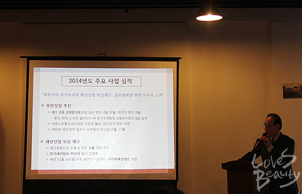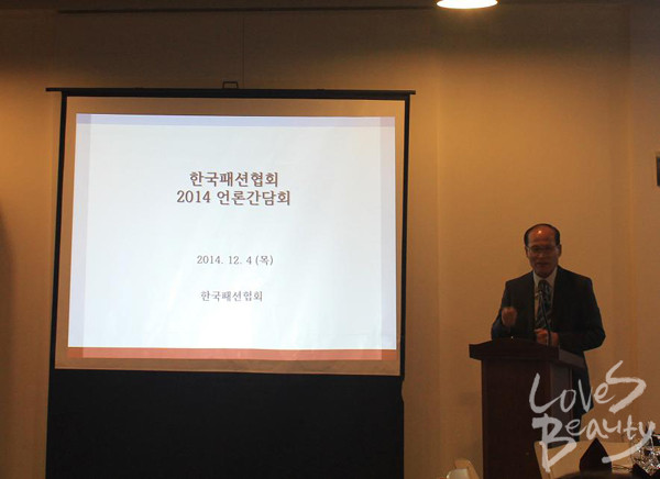 <한국패션협회(회장 원대연)>가 4일 국내 언론 매체 패션·유통 전문 기자 50여 명이 참석한 가운데 언론 간담회를 진행했다.한국패션협회는 간담회를 통해 올해 진행한 각종 사업에 대한 실적 및 2015년도 사업 추진 방향을 소개하고 올해 [한국 패션산업 10대 뉴스]를 발표했다. -