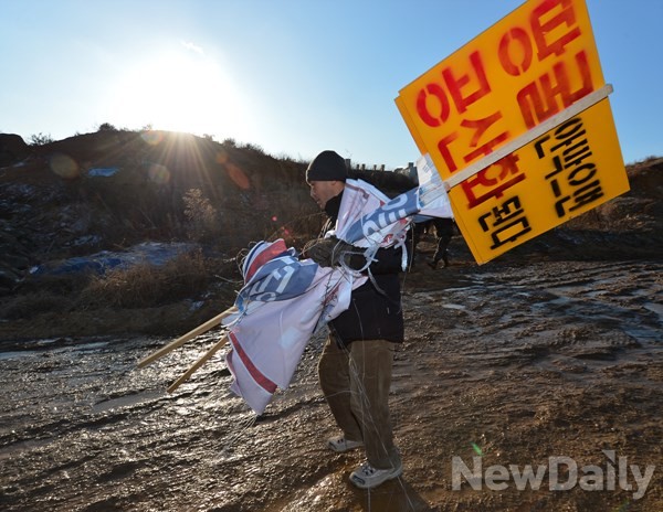 합동참모본부가 5일 오후 경기 남양주 지금동에서 [양주, 남양주 땅굴민원관련 시추, 탐사결과]를 발표하고, 민간단체가 주장한 북한군의 남침용 땅굴의 존재가능성에 대해 징후가 전무하다고 결론내렸다.합참은 지난 1일부터 4일까지 나흘동안 최대장비와 인력을 투입해 조사한 결과 이 같은 결론을 얻었다며 민간단체가 땅굴의 존재에 대해 주장하는 민원내용을 조목조목 과학적인 결론을 토대로 반박했다.이날 현장에는 [땅굴안보국민연합] 회원 30여 명이 남양주 땅굴의 존재를 확신하며 관련자료를 배부하며 합참의 결론에 부정적으로 반응했다.(남양주=뉴데일리 정상윤 사진기자)