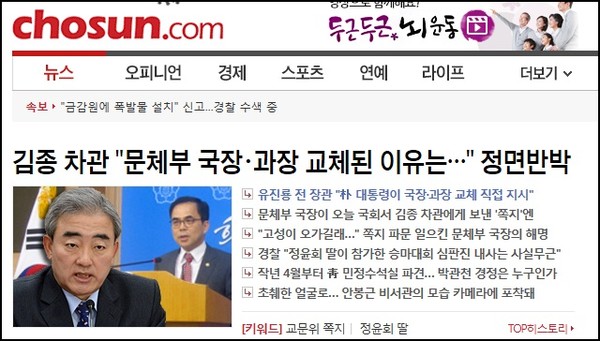 언론에 대서특필할 만한 기사거리가 없는 날에는 대한민국의 장래를 걱정하는 기획기사를 많이 내보내어, 한국의 군중과 청년들이 국가의 미래를 고민하게 만들어야 하는데, 병들고 무능한 한국의 언론계는 기사거리가 없으면, 정부에 관련된 가십거리를 대형사건으로 변환시켜서 망국적 난리법석을 치고 있다. 오늘(5일 조선-동아-중앙일보 인터넷판의 톱뉴스는 모두 '정윤회 관련 청와대 문건 유출 사건'을 선정적으로 다뤘는데, 이런 현상은 모두 '정보를 수집해서 보도하는 건강한 언론'이 아니라 '기사를 조작해서 보도하는 병든 언론'의 모습이다. '대통령이 문체부 국과장의 인사 교체를 직접 지시했다'는 조선닷컴의 톱기사도 황당하게 보인다. '정윤회 거짓말할 땐 내가 나설 것'이라는 박지만씨의 주장을 보도한 중앙일보의 톱뉴스도 선정적이다. 동아닷컴의 '벌써 쌍끌이 특검 우려? 권력은 측근이 원수라는 말이'라는 톱뉴스도 선동적이다.