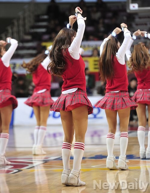 6일 오후 안양시 안양실내체육관에서 열린 2014-2015 KCC 프로농구 안양KGC 와 인천 전자랜드의 경기에서 치어리더들의 하프타임 응원이 이어지고 있다.