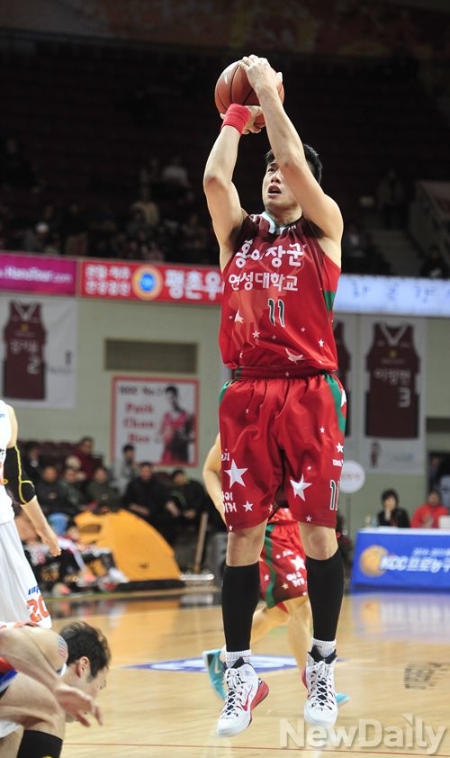 6일 오후 안양시 안양실내체육관에서 열린 2014-2015 KCC 프로농구 안양KGC 와 인천 전자랜드의 경기에서 안양KGC 양희종 선수가 수비를 따돌리고 2점슛을 던지고 있다.