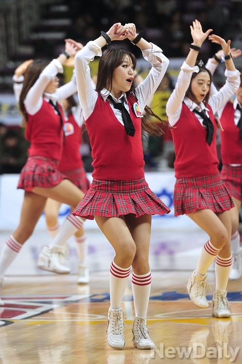 6일 오후 안양시 안양실내체육관에서 열린 2014-2015 KCC 프로농구 안양KGC 와 인천 전자랜드의 경기에서 치어리더의 하프타임 응원이 이어지고 있다.