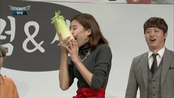 장도연은 7일 오후 7시 40분에 방송되는 tvN '코미디빅리그'(이하 '코빅) 100회에서 두 손에 무를 들고 앞니로 가는 ‘갈갈이’ 퍼포먼스를 선보인다.