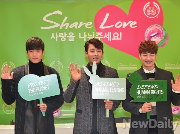 영국 자연주의 브랜드 더바디샵이 10일 오전 서울 코엑스 더바디샵 매장에서 [쉐어러브, 쉐어 더바디샵] 행사를 열었다.이번 바디샵 행사에는 가수 손호영, 배우 하석진, 손호준이 각각 지지하는 단체의 대표로 나섰다. 손호영은 [중앙아동보호 전문기관], 하석진은 [환경 재단], 손호준은 [동물자유연대]를 대표로 참석해 캠페인 동참에 대한 목소리를 높였다.더바디샵은 이번 캠페인을 통한 수익금 전액을 국내 NGO 단체에 기부할 예정이다.더바디샵 김은혜 상품마케팅팀 부장은 "평소에도 선행에 앞장서는 세 분 인만큼 자신이 지지하는 단체를 선택해준 팬들에게 고마운 마음을 일일이 표현할 만큼 배려가 깊었다"며 "오늘 행사를 계기로 많은 사람들이 쉐어러브 캠페인에 동참하길 바라며, 이를 통해 뜻 깊은 한 해로 마무리하길 바란다"고 전했다.