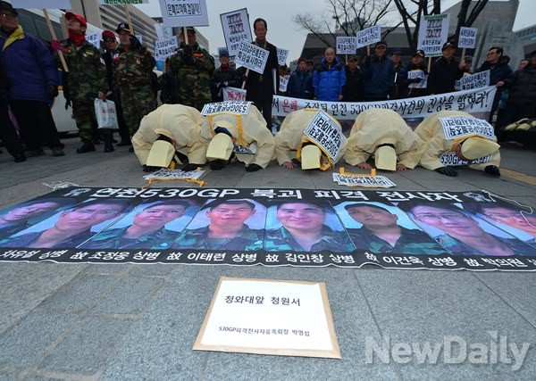 [연천530GP피격사건진상규명촉구국민협의회]와 [연천530GP피격사건전사자유족회]가 10일 오후 서울 동아일보사 앞에서 [연천530GP 피격사건 은폐조작 진상규명 특검촉구 기자회견]을 가지고 진상규명에 대한 특검을 촉구하며 행진했다.이들은 2005년 6월 19일 중부전선인 연천530GP에서 북한의 포격으로 국군 8명이 전사한 사건을 은폐 조작했다고 주장하며 은폐조작 진상규명을 위한 특검을 촉구했다. 이들은 기자회견 후 동아일보사 앞에서 정부종합청사까지 행진한 뒤 유족대표 1명이 청와대에 청원서를 접수하고 자진해산 했다.
