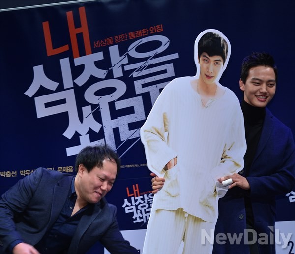 배우 이민기와 여진구가 정신병원에서 만났다.영화 '내 심장을 쏴라(감독 문제용, 원작 정유정)' 제작보고회가 11일 오전 서울 압구정CGV에서 열렸다.이날 제작보고회에는 연출을 맡은 문제용 감독과 출연배우 김기천, 박두식, 유오성, 여진구, 김정태가 참석해 자리를 빛냈다.영화 '내 심장을 쏴라'는 정유정 작가의 동명소설을 원작으로 정신병원에서 만난 동갑내기 두 청춘(이민기, 여진구)이 인생을 위해 끊임없이 도전하는 스토리를 담았다.여진구, 이민기, 유오성, 김기천, 김정태, 송영창, 신구, 박충선, 박두식 한혜린 등이 출연하는 '내 심장을 쏴라'는 오는 1월 개봉 예정이다.